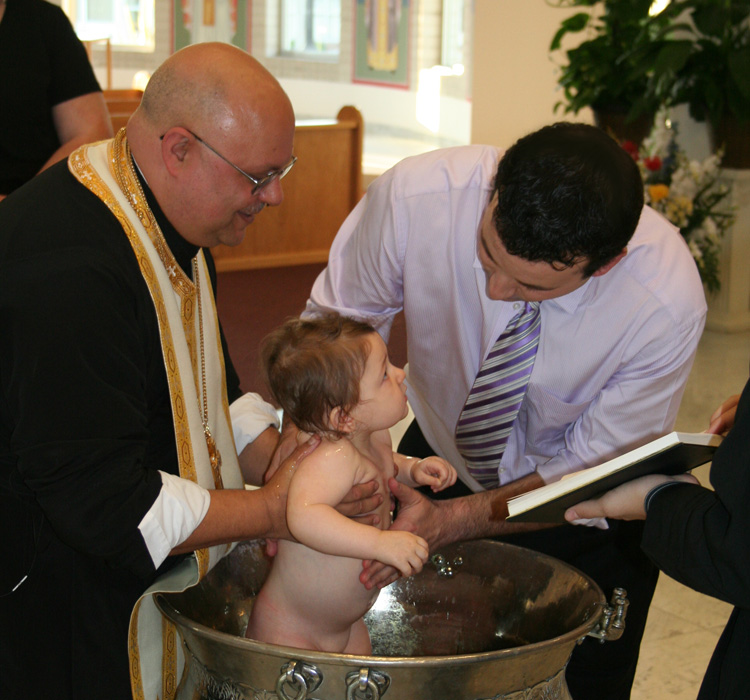 ![]() ![]() Godfather Jim, Zoe, the baptismal font, and Father John. It's GO time! ![]() Zoe... clueless as to what's going on. ![]() Yiayia took Zoe, stripped her down, and brought her back for the dunking. ![]() This is definitely the most jovial baptism I've ever been to. ![]() Let's get a little oil on her head... ![]() ...on her body, too... ![]() ...and now, let's dunk. ![]() "So, what's up, Padre?" ![]() You know what's awesome about Father John. He plugged this very website at the start of the service. Good times.  |