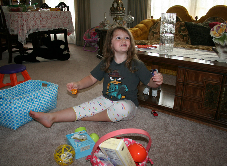 ![]() ![]() "So a basket full of goodies for Easter is independent of my birthday, which is tomorrow, right?" ![]() It's just a plastic egg, but by the look on her face, you'd think she's trying to solve a Rubik's Cube. ![]() "Hmmm... this doesn't look like Godiva." ![]() Zoe playing with her cousin Nicholas at the Easter picnic. As for Jugs and Johnny Whitepants eyeballing my daughter, we don't know them. ![]() "This whole cake is for me, right? It's got my name on it and everything." ![]() Blow! Blow like the wind! ![]() "Pink with pink frosting. Just like I asked. I AM the Queen." ![]() Zoe's Godparents got her sunglasses and personalized ladybug plates, which she absolutely adores.  |